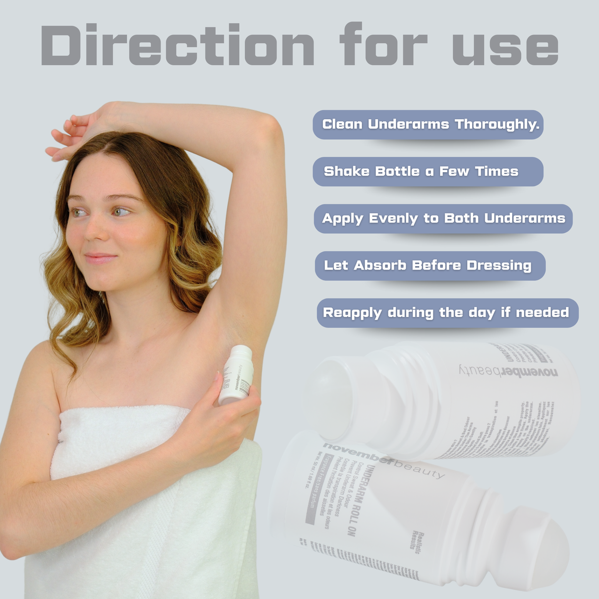 Apply evenly to both underarms.